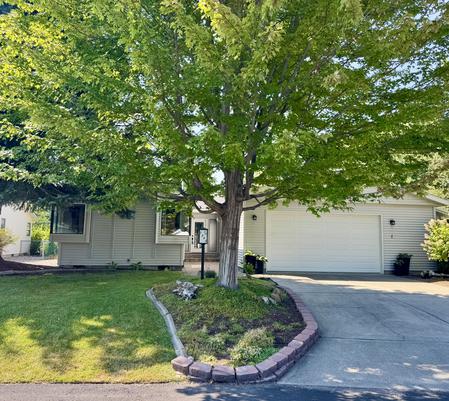 Charming home with 3 good sized bedrooms, 2 large bathrooms & an oversized 2 car garage plus a storage shed that can be yours today. Amenities include extra driveway parking, private back yard with bubbling water feature, fully fenced, and extra-large covered patio accessible from dining and master bedroom, which is ideal for entertaining, gardening, and outdoor relaxation. Ample storage throughout, jetted tub in guest bath, newer furnace, freshly painted walls in most of house, newer flooring throughout, heat tape on roof, metal awning, garden window at kitchen sink, ADA toilets, double vanity in master bath, good sized laundry room, granite in bath and kitchen, plus more extra's that make this home truly a must see. The plan itself is open with a large kitchen, living area, extra office or craft area, with guest bedrooms away from master. The fireplace is 2 sided from living to master bedroom, kitchen has lots of cabinets and there is great lighting with many windows!