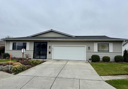 Centrally located single dwelling in Leisure Park with nice space between neighbors. This home is open with vaulted ceilings in living/dining and master bedroom. Ample storage throughout the home helps downsizing for those storage needs. Enjoy the front covered patio and rear covered porch for morning sunshine and afternoon shade. Newer roof, nice laminate or LVP flooring in dining and living area, lots of windows for natural light, and very clean for easy turn over. Great home to take a look at and consider living the Leisure Park lifestyle in this price range.
